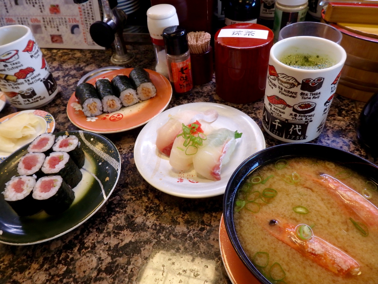 ”白河にいったら八千代鮨”という友人がいて一度行ってみたかった。回転寿し形式だけど既にタッチパネル方式になっていてオーダーしやすいし、お寿司は回ってません、カウンターのなかの職人さんから受け取る方式。