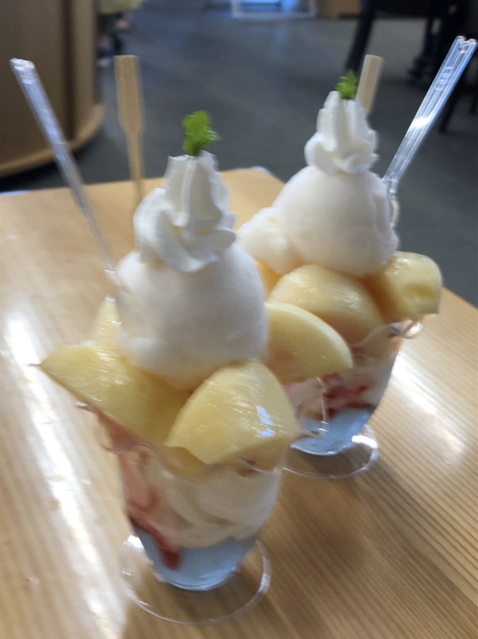桃のシャーベット、生の桃の甘さの相性が良く、さらに