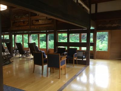 展望風呂が素晴らしかったです。少しでも雨が上がり、天気が良くなるとすぐに窓を開けてくれます。源泉は不老不死温泉と同じですが、ろ過されているのでお湯は透明です。
