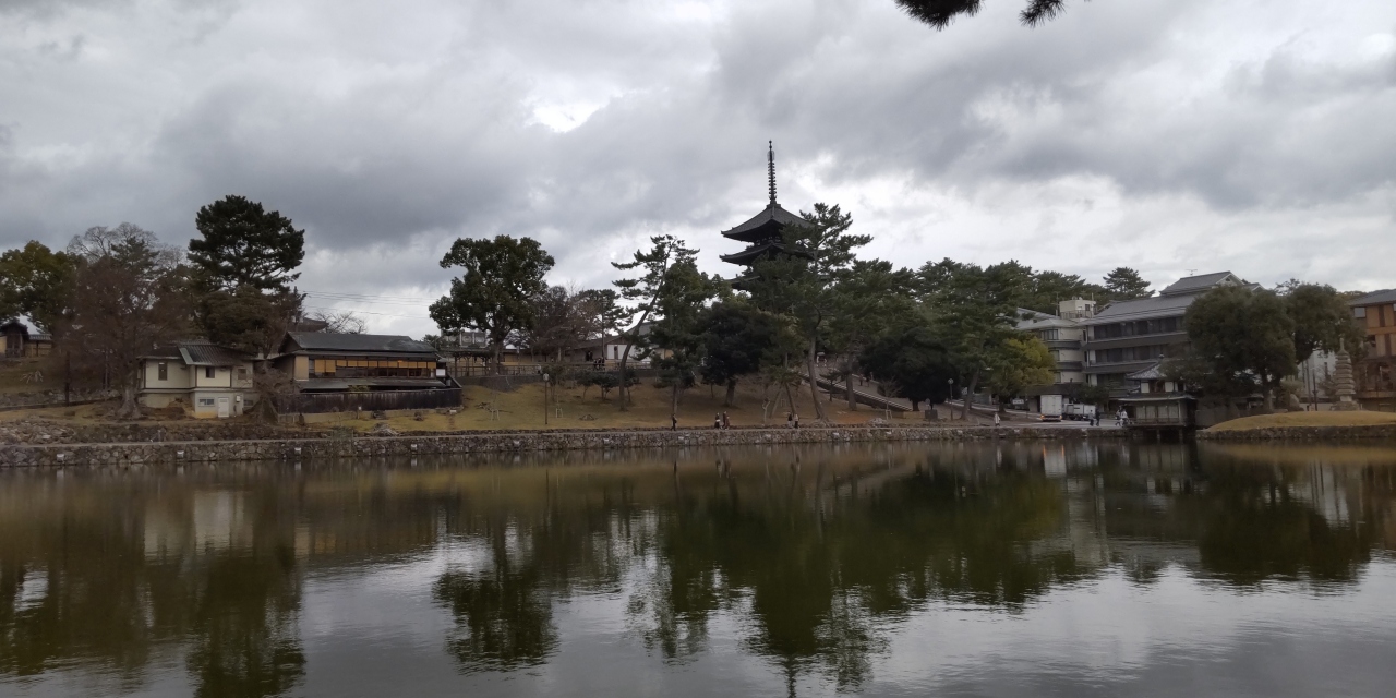 ☆中金堂を横目で見つつ、坂を下れば猿沢の池に映る『興福寺五重の塔』が清々しい。- 旅行時期