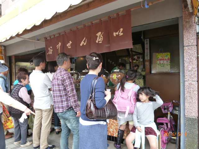 JR日暮里の傍らすぐに文豪達が数知れず眠っておられる『谷中墓地』の坂を上がり、何やら人だかりが!『谷中煎餅屋』の前に群がる人々〜