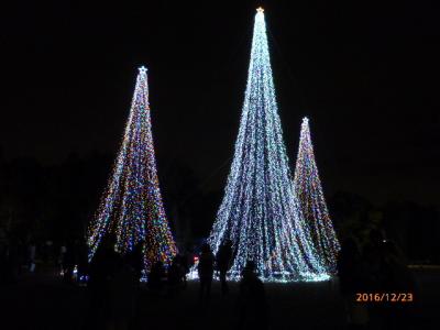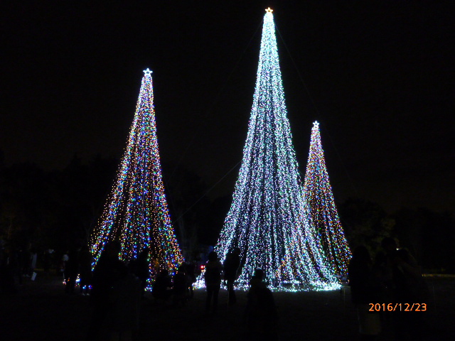 それでも小さい子を連れた家族がたくさん訪れて暗闇の中に映えるイルミネーションの世界を楽しんでいる様子がありあり。。。