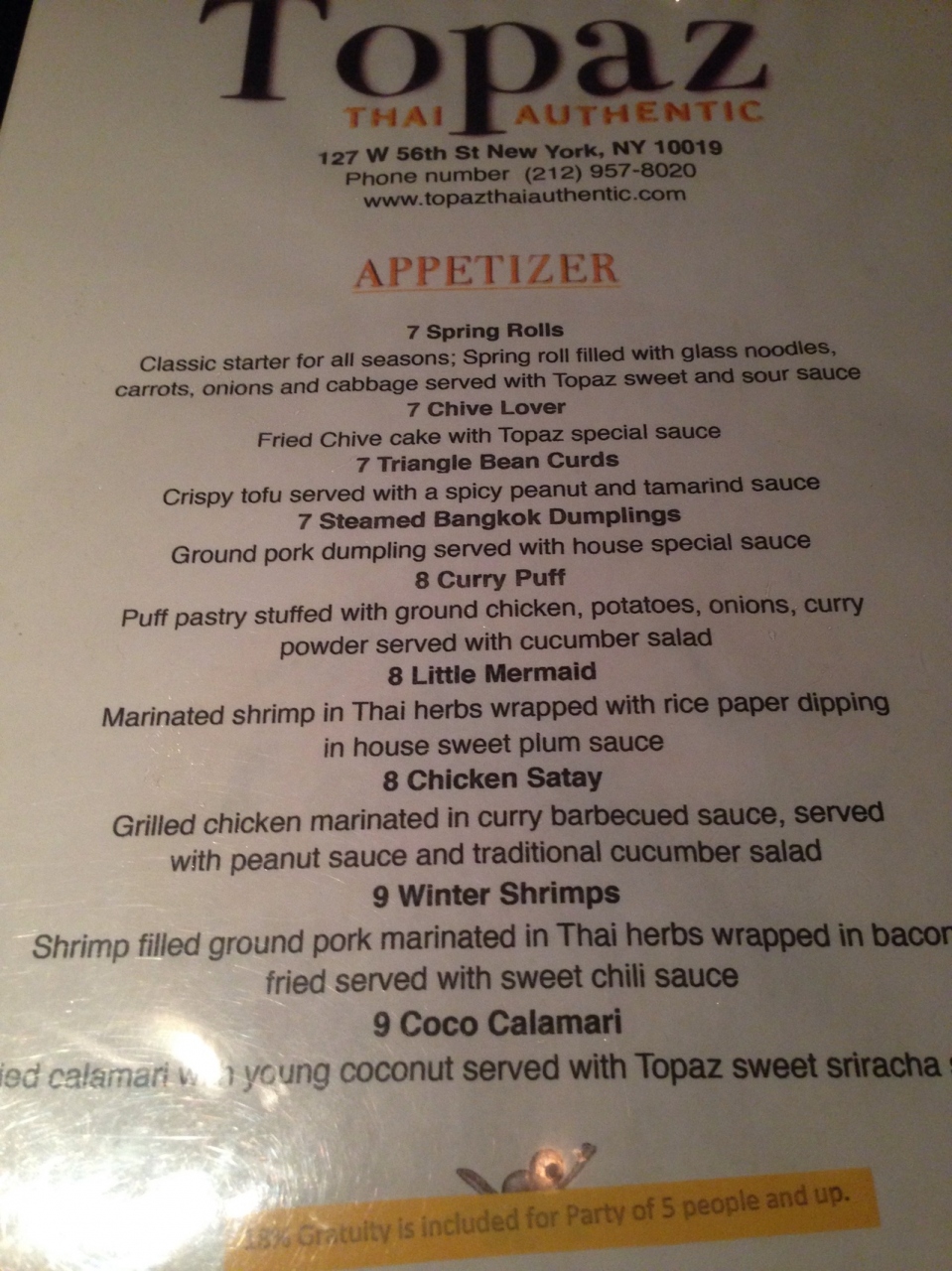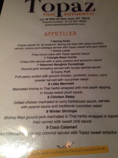 ミッドタウンイースト53stにあります。この通りは日系のお店(女性が隣に座ってお酌してもらったり、カラオケができる飲み屋さん数件、高級日本食レストラン、ラーメン屋、ジャズバー、朝方まで営業している居酒屋)が何件もある通りにある東南アジア料理レストランです。