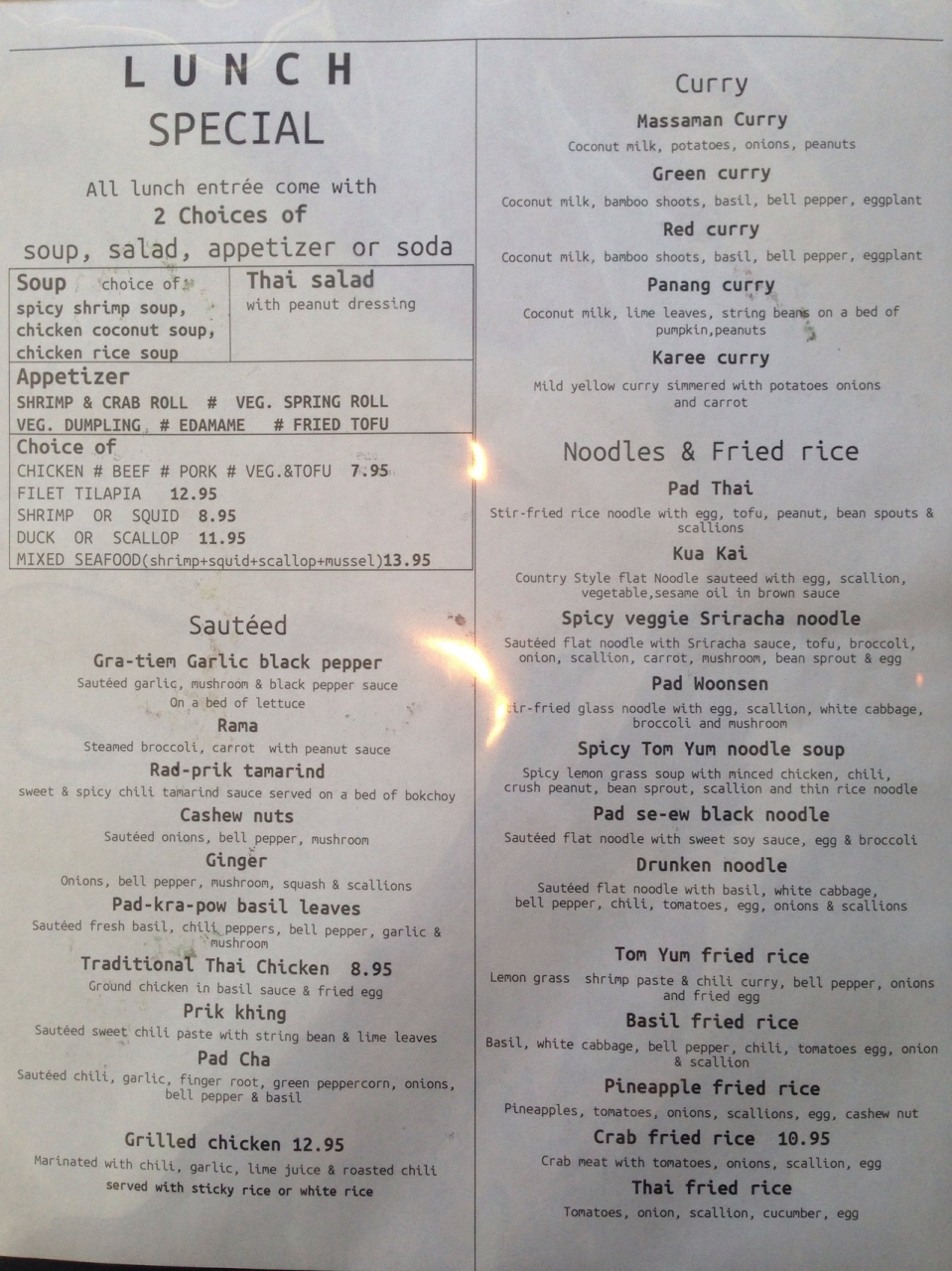 $7.95(TAX+チップ抜き)で美味しいタイ料理ランチを。