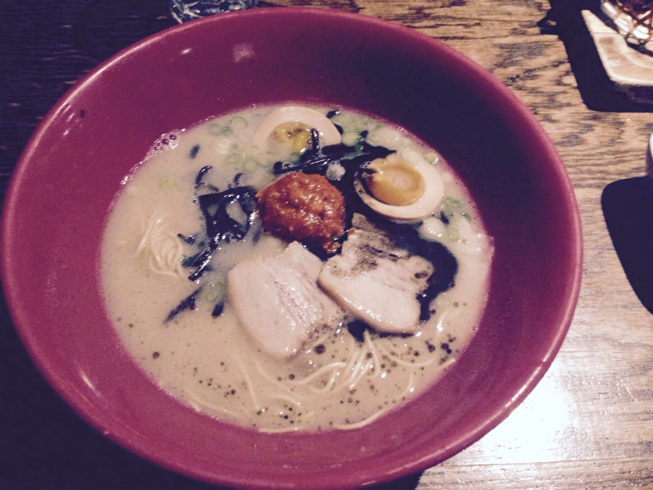私は赤丸新味($15)をを頼みました。美味しかったですが、値段を考えると日本の一風堂の用にズルズルと食べることが出来なくて、ゆっくりと一口一口を味わって食べました。ラーメンを食べてる感じがしませんでした。