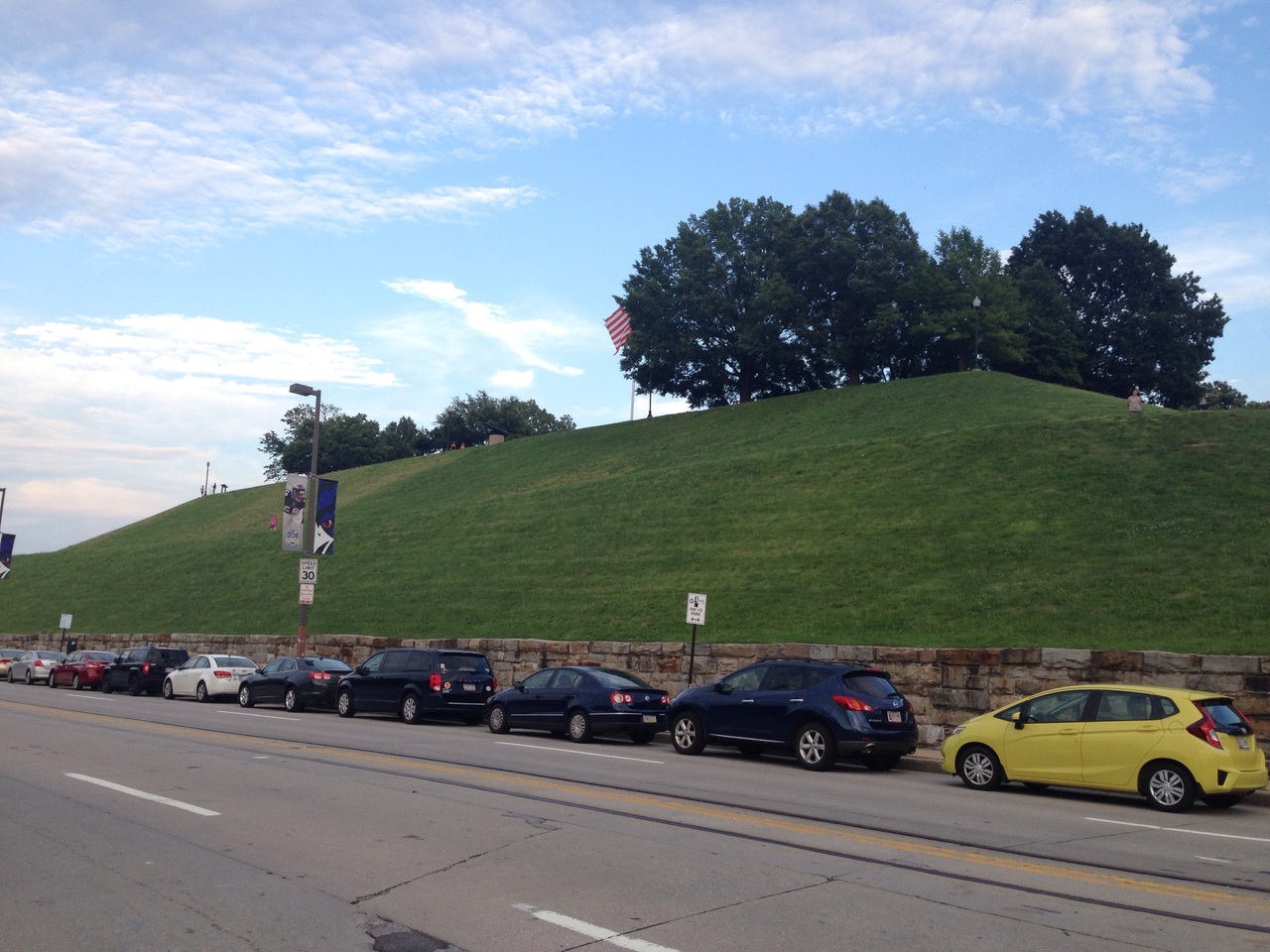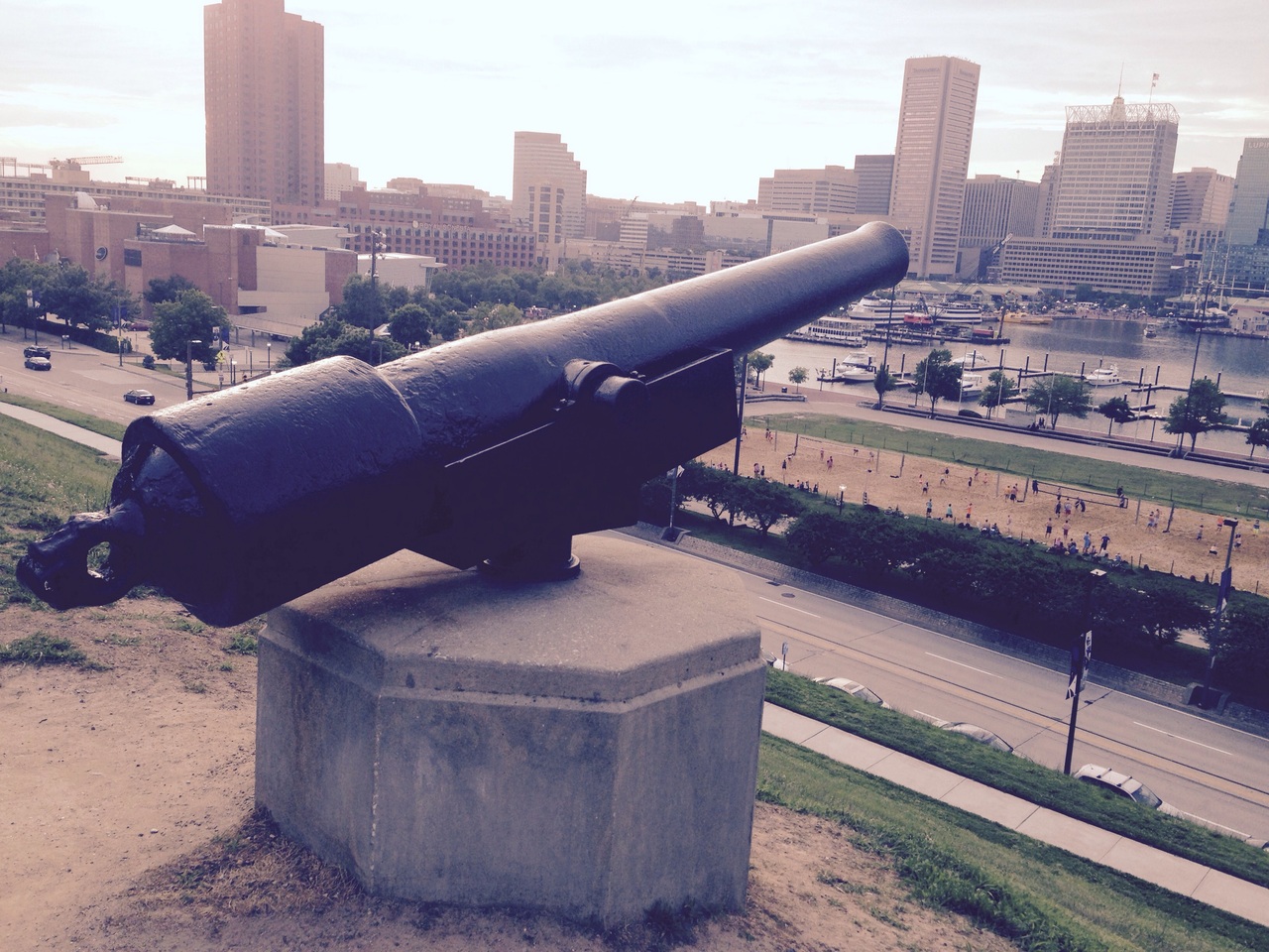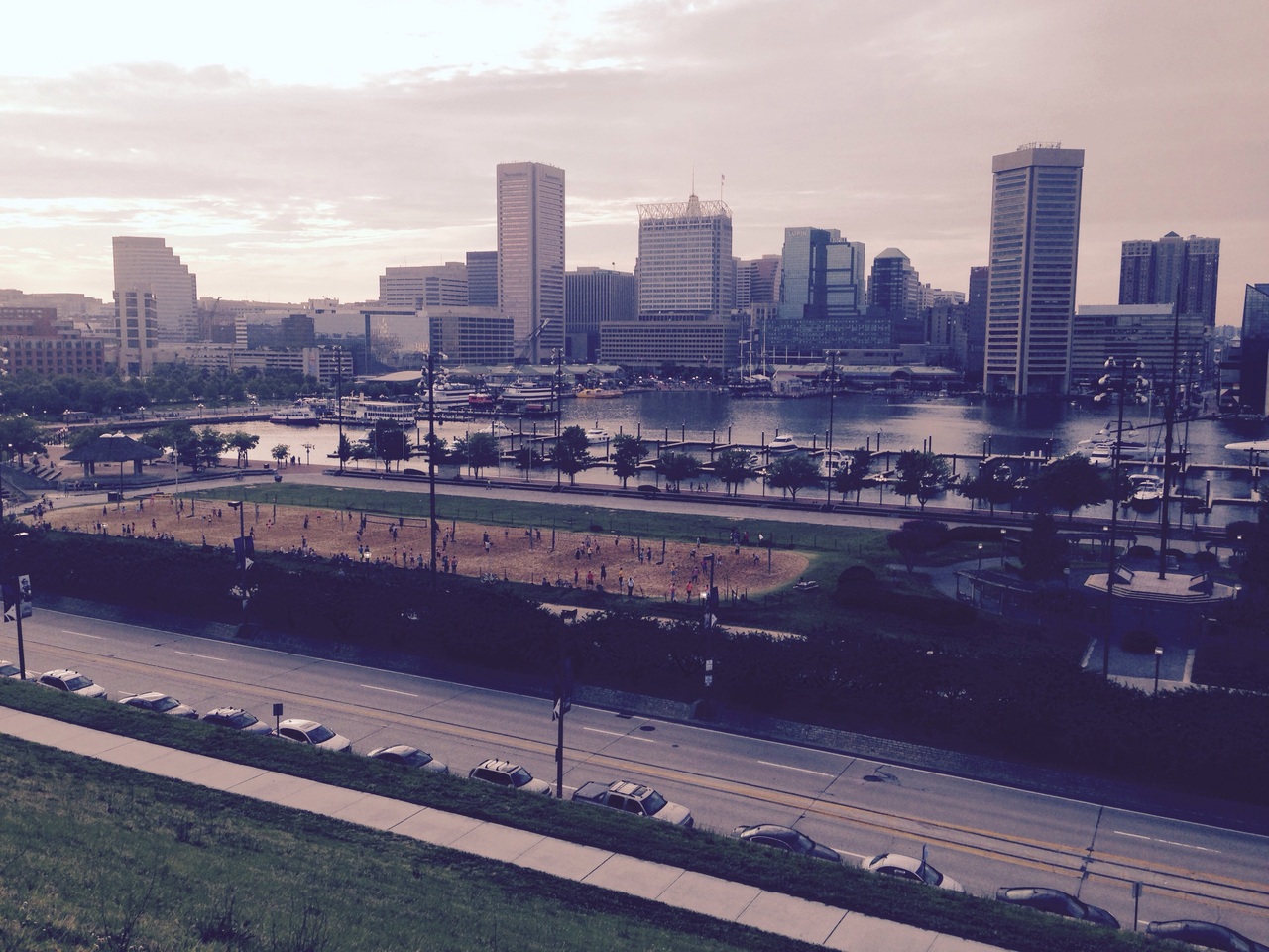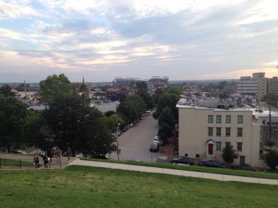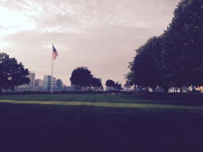 インナーハーバー沿いのナショナル水族館の反対側にある大きな丘です。階段を登るとボルチモアの景色を見渡せます。丘の上に子供が遊ぶ遊具もあり、子供達が楽しそうに遊んでいたり、ジョギングをする人達がいたりと素敵な時間が流れる夕暮れ時でした。