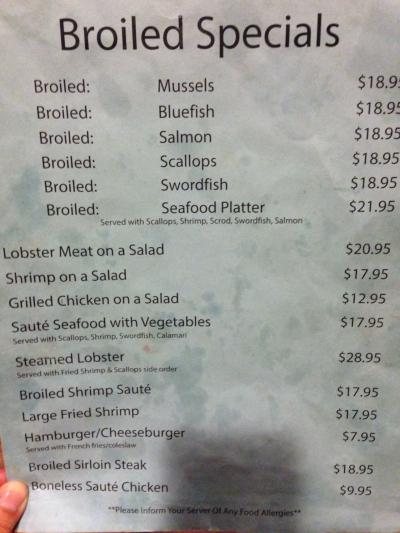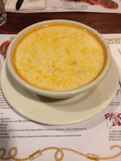 「ロブスターが食べたい」とリクエストしたのですが、「ロブスターは明日にして、ここではシーフードチャウダーを食べた方がいいよ」とのアドバイスでSEAFOOD CHOWDERのBOWL ($5.95)をオーダーしました。