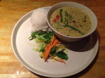 ランチメニューのグリーンカレーを頼みました。頼んだ物が来てビックリ。ドレッシングがかかってるんだかかかってないのかわからない少量のサラダ、乾燥したご飯でした。