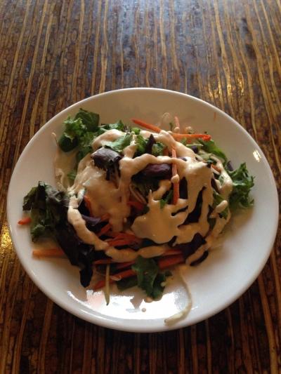 サイドディッシュにコーンブレッドとサラダ、イエローライス、フレンチフライ、ベイクドポテトの中から一つ選べます。私はサラダを選びました。