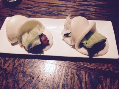 私達はアペタイザーに一風堂パンズのポーク(2個$9)と竜田揚げ おろしポン酢添え($9)をオーダーしました。普通に美味しかったです。