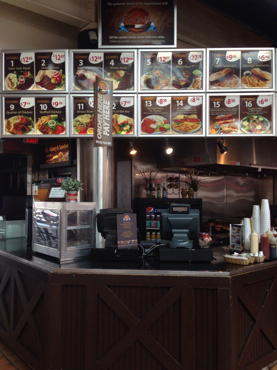 フードコートの方は注文をしてからレジの斜め後ろにあるグリルでお肉を12分~18分で焼き、2種類のサイドディッシュを選びます。