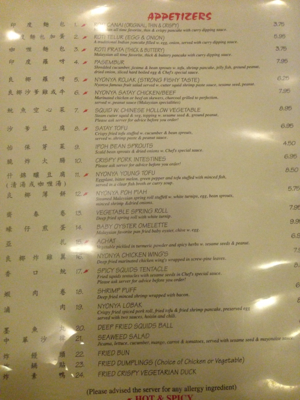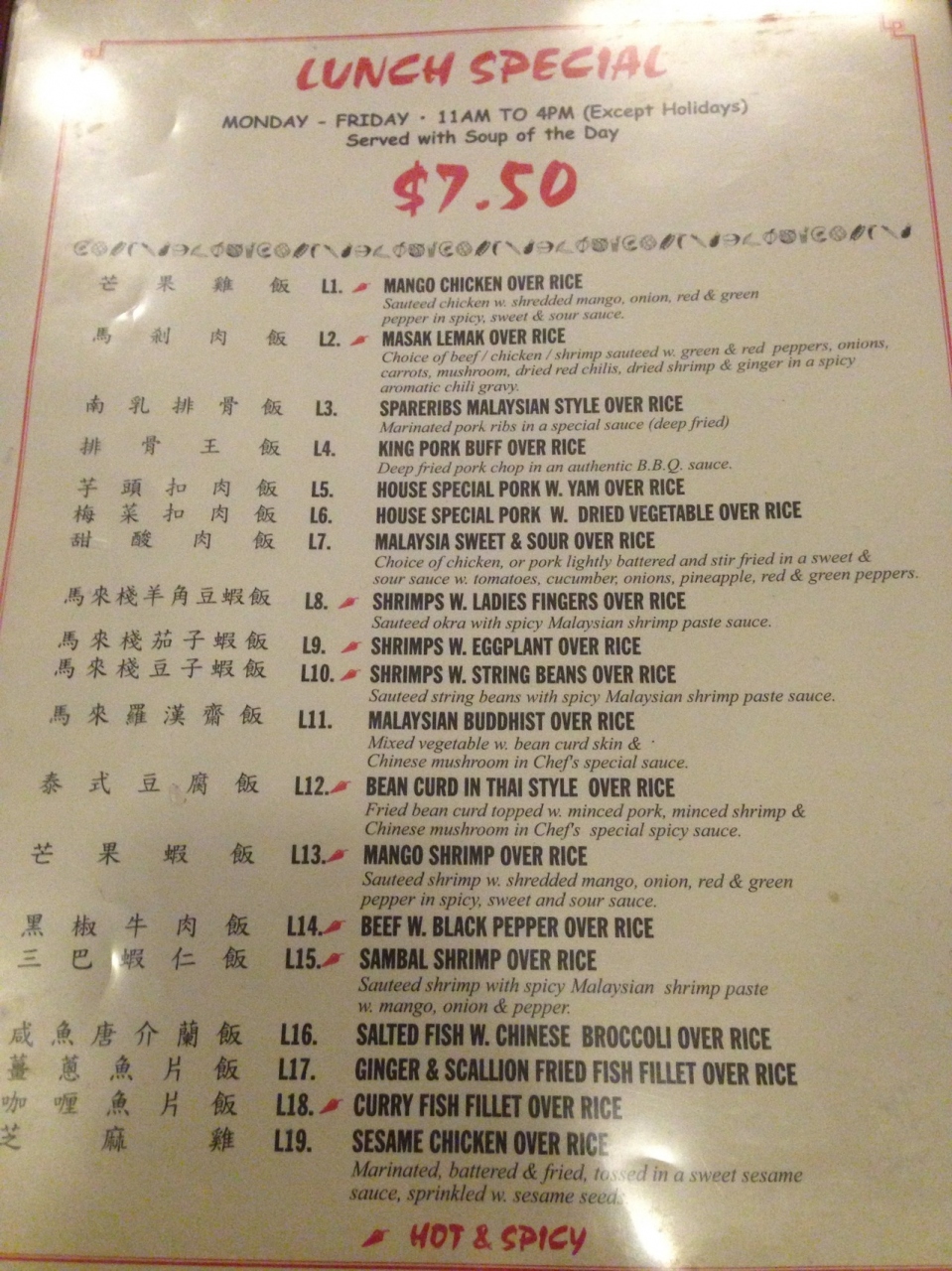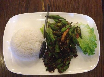 ランチタイムに行きました。私はランチメニューのL8.SHRIMPS W.LADIES FINGERS OVER RICE($7.50)をオーダーしました。