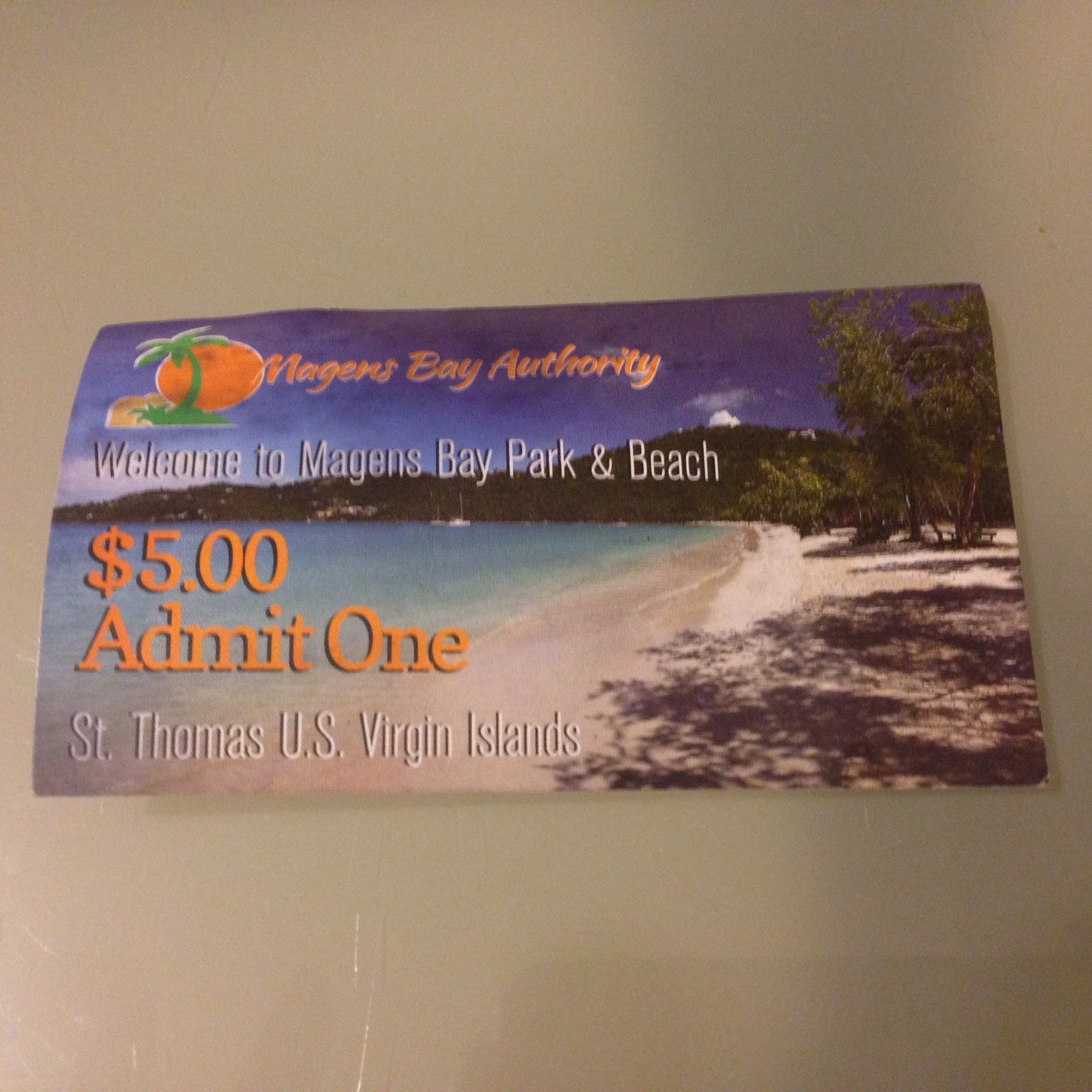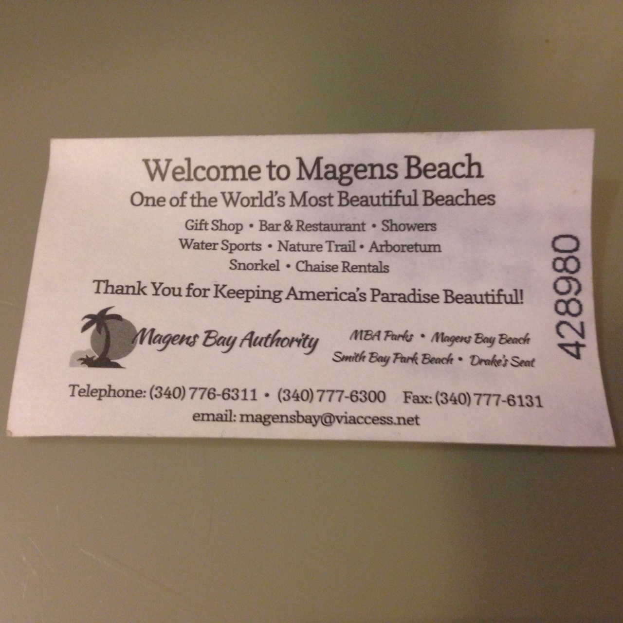 マゲンズビーチの駐車場の入り口に着くと看板に入場料$5と書いてあり、タクシーの運転手さんに$5を渡し、マゲンズビーチの駐車場の入り口にいた方にお金を渡してチケットを貰ってました。