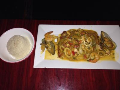 メインディッシュはホクホクした白身魚の上にシーフードとジュースがかかった物を食べたのですが、濃くない味で、とても美味しかったです。