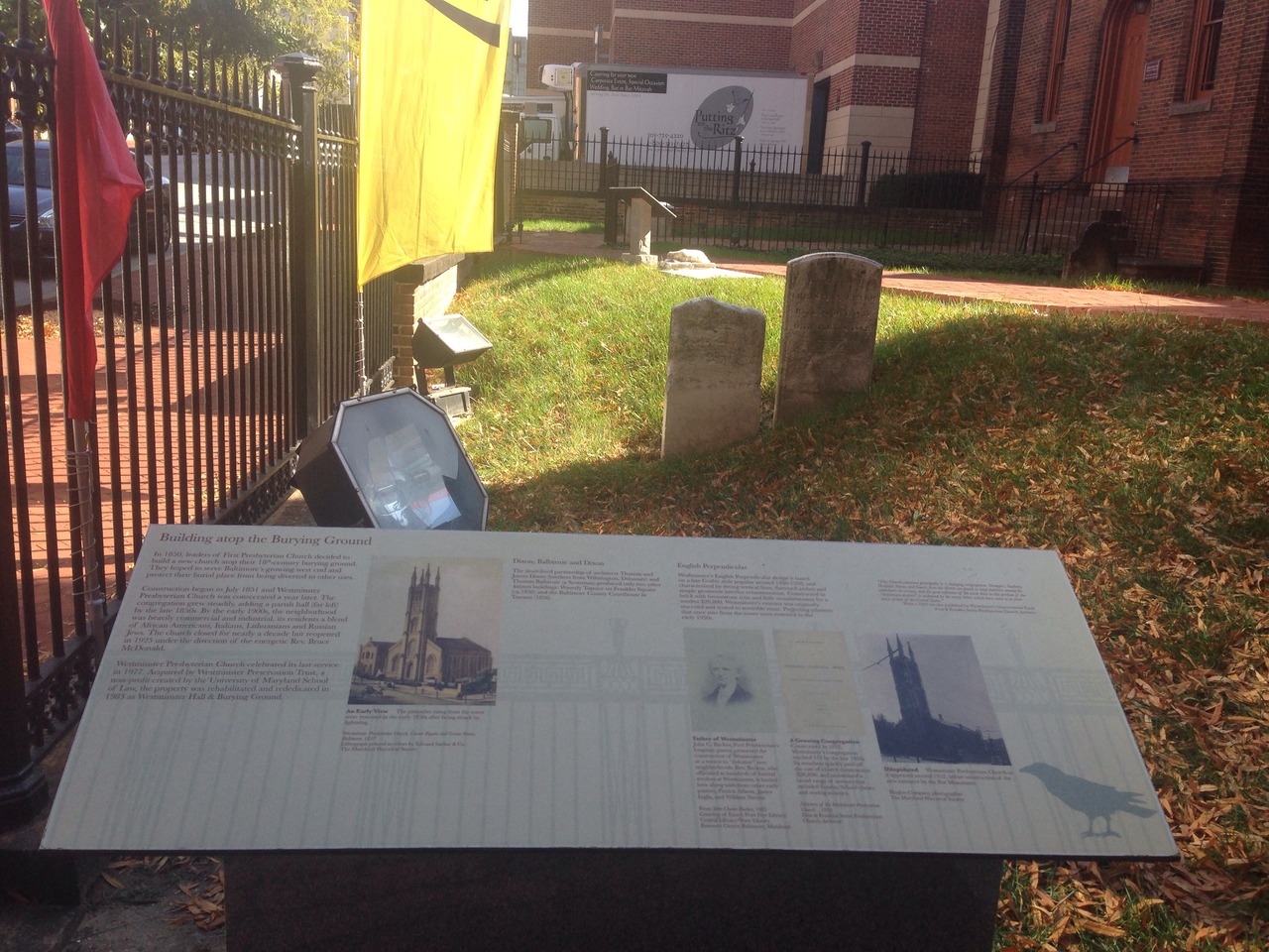 レキシントンマーケットから徒歩で3分位です。隣にエドガー・アラン・ポーのお墓があります。私が行った時は、地元の低所得者達にランチを配給していたので、中に入れませんでした。