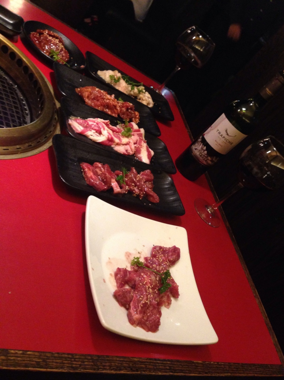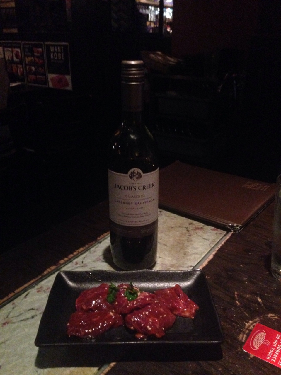 夜のハッピーアワーは9時半からなので、混んでいる事を予測して、9時前に行ったのですが、同じ事を考えているハッピーアワー目当ての人達が何組かいました。その中の一組が、一緒にハワイに旅行に行った友人で、3年振りの思わぬ再会に牛角のハッピーアワーに感謝でした。
