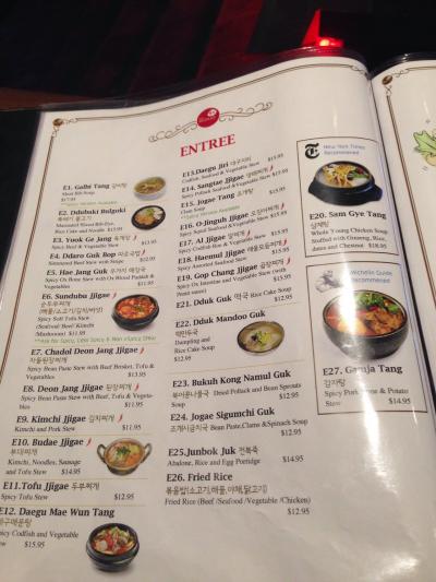最初は私たち以外は韓国人客ばかりでしたが、しばらくすると、韓国人客と白人客が入れ替わるように白人客で沢山になりました。NYのガイドブックを持っていた人や、買い物袋を沢山持っていた家族連れがいたので、ニューヨーカーではない観光客も入りやすい雰囲気のレストランなんだなと感じました。