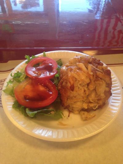 大きいサイズを食べたのですが、今まで食べたクラブケーキの中で1番カニの身が大きくて、詰まっていました。
