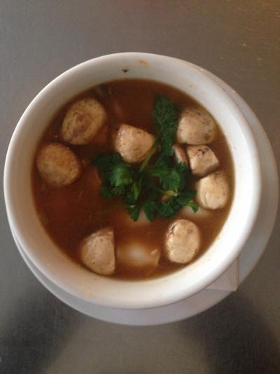 appetizerとメインを一種類ずつ選べます。私はappetizerにトムヤンクンを選びました。日本だとあまり食べないと思いますが、生のマッシュルームやエビが沢山入っていて美味しかったです。イカも身が大きかったです。