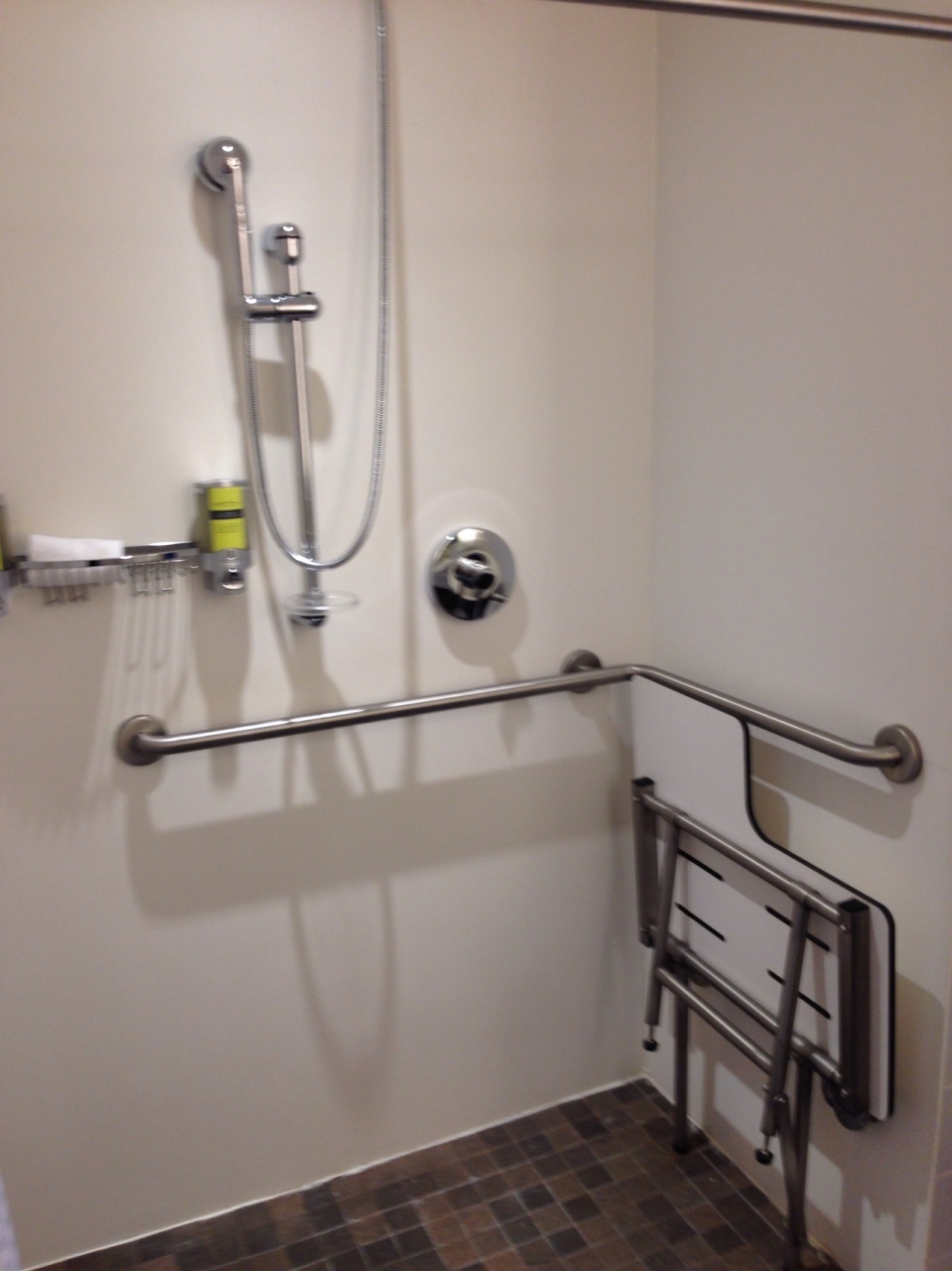 他州から友人が宿泊した時に遊びに行きました。友人が宿泊した1707室はバリアフリーでシャワルームにも椅子がありました。(バスタブは無くシャワーだけでした。)部屋にキッチンや大きな冷蔵庫も付いていました。