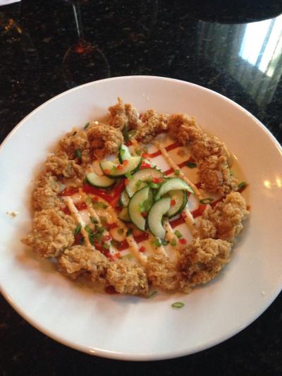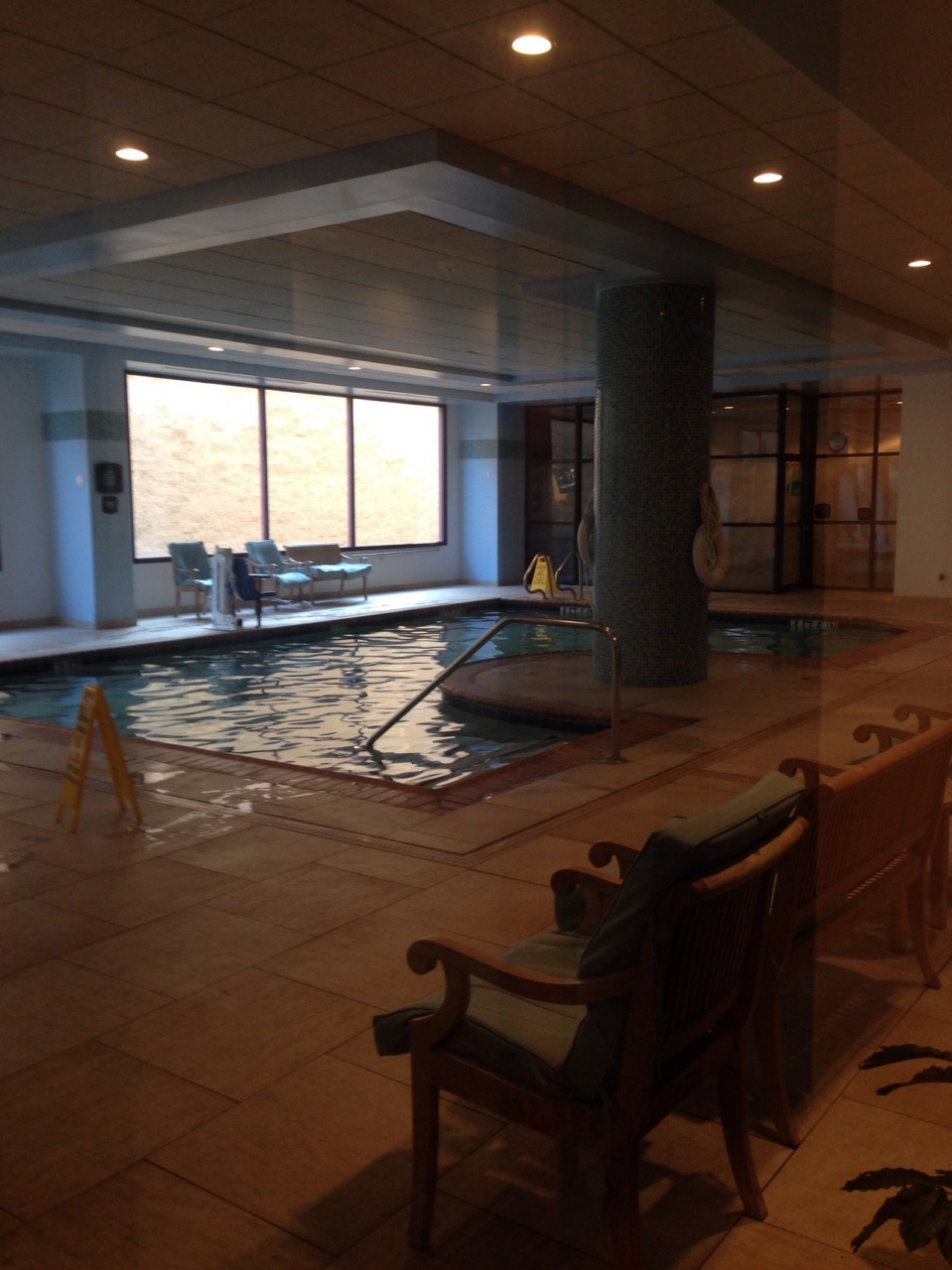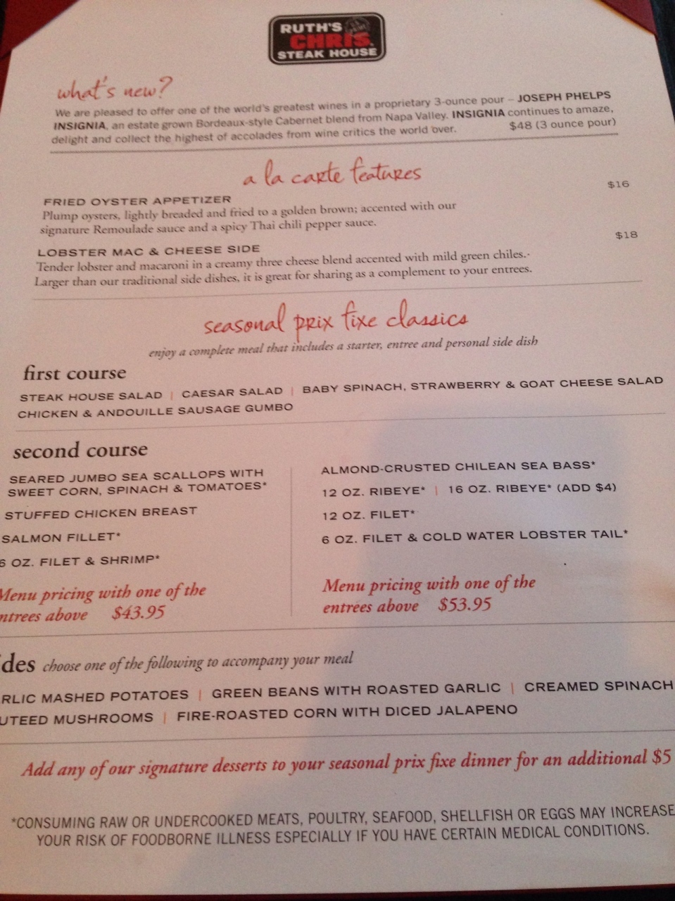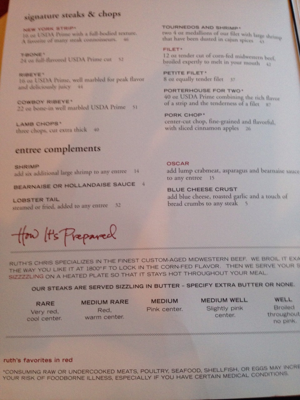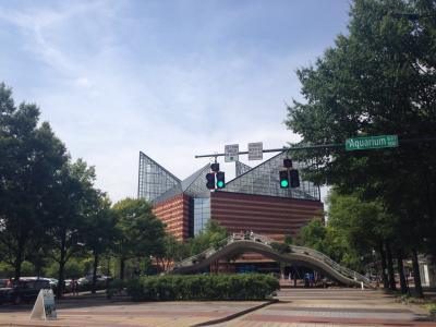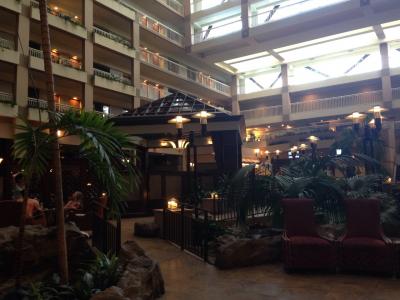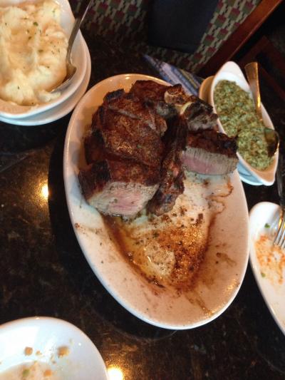 ホテルの中に入っている「RUTH’S CHRIS」と言う名前のステーキハウスに行きました。ホテルのエントランスからステーキハウスに入ったのですが、ロビーが吹き抜けていて、南国風の植物で溢れ、人口の川が流れていて、海のないアトランタで、まるで南の島にいるような感じになりました。