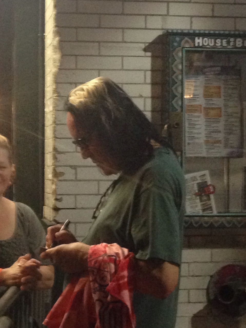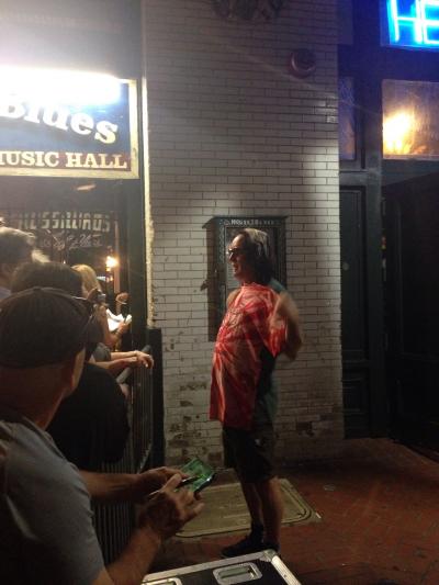 House of Bluesで演奏した方なんだろう、沢山の人がサインをして貰ったり、写真を撮っても貰ったりしていました。気さくそうな方だったので、私も便乗して「写真を撮っていいですか?」と聞くと「もちろんさ!」と言ってくださり、私が日本人だと気づいたのか自らピースサインまでしてくださるという大サービスでした。