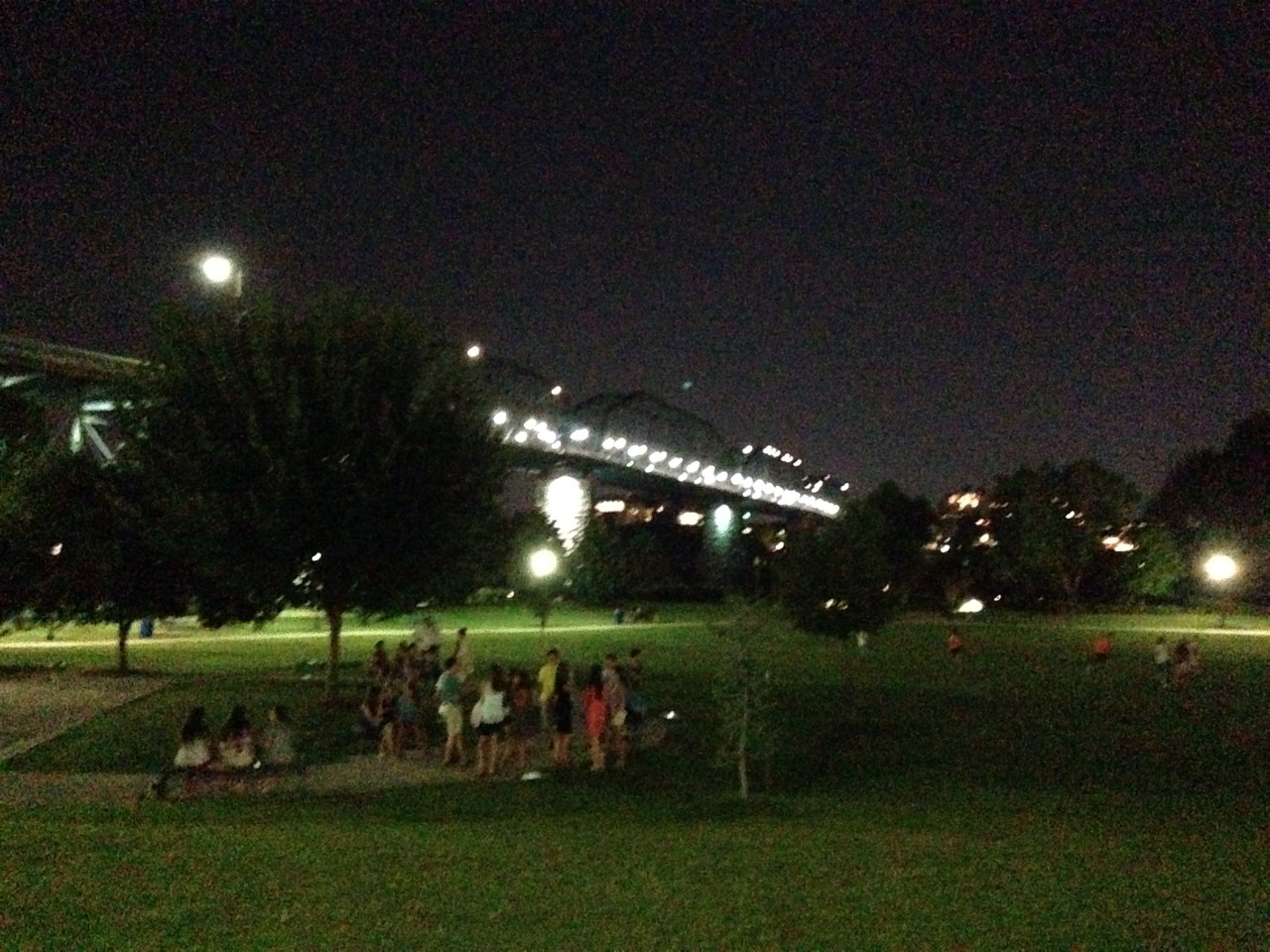 夜9時は過ぎていましたが、人が沢山いました。ジョギングをする人達、アイスクリームを食べながら歩いている学生達、一眼レフのカメラを持っている観光客達、デートする恋人達、缶を隠して飲酒しているおじさん、ナンパ待ちやナンパをしている若者達etc...