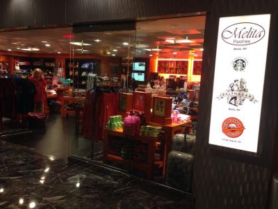 このホテルは2階にも宿泊客以外でも使えるトイレがありますが、エスカレーターで8階まで行ってホテルのロビーまで行くと、レストラン、Bar、スーベニアショップ、ジュエリーショップ、チケットセンターなどあります。