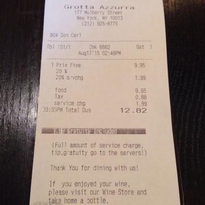 チップが込みのレストランの店員さんは横柄な人が多いのですが、このレストランの店員さん達は凄く丁寧で親切で、文句の付け所が無いイタリアンレストランです。- 旅行時期