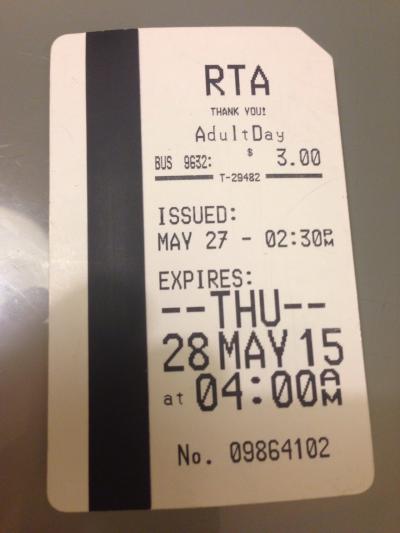 片道1.25ドル、トランスファーが25セントなので3ドルの一日券乗り放題券を買うのがお得です。