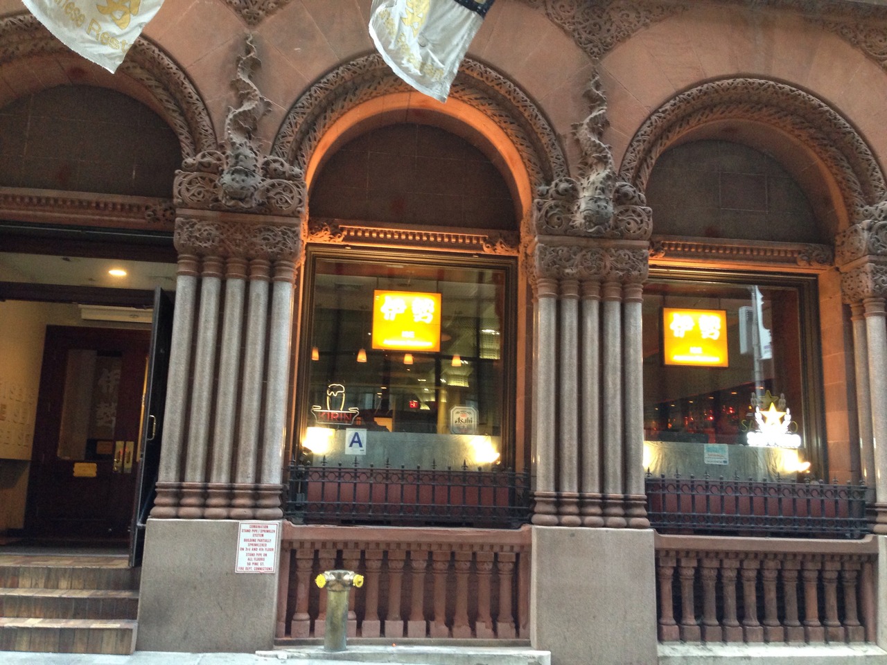 打ち上げで行きました。Wall街付近の道はごちゃごちゃしているので行くときに、迷うかな?と思ったのですが、赤色の2番、3番のWall St駅の出入り口のすぐ隣だったので心配し損でした。
