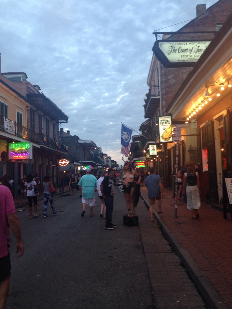ニューオリンズ1番の観光スポットです。ライブハウス、ニューオリンズ料理レストラン、オイスターバー、ストリップ劇場、客引きのお兄さん、大道芸人etc...昼間からあちこちからジャズやブルースが聴こえてきます。