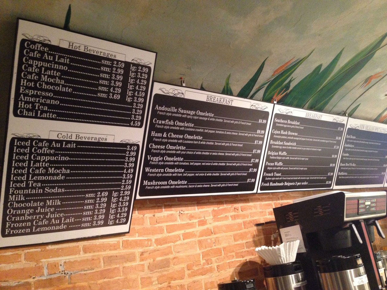 ベニエが有名なカフェですが、行った時間が朝食の時間だったので、沢山の人が朝食メニューを食べていました。どのメニューもリーズナブルでとても美味しそうでした。