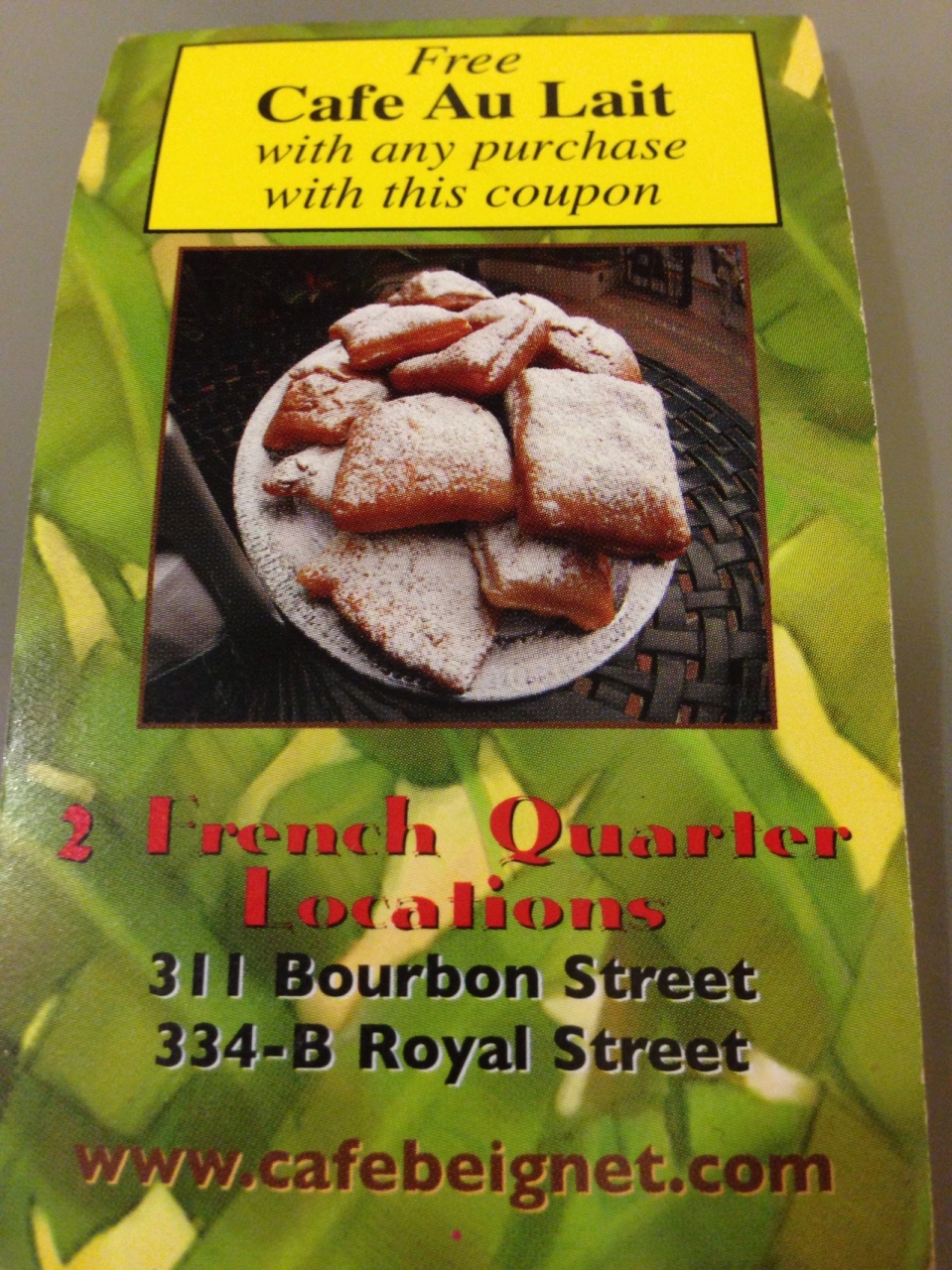 ツーリスト インフォメーション センターの方に、何か買うとカフェ・オレがサービスで貰えるクーポンをいただいたので、ベニエを買って、クーポンを出したら、カフェ・オレをもらえました。