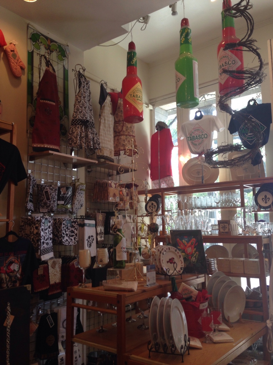 色々なflavorのタバスコや、小さいサイズから巨大なサイズのタバスコ、タバスコのお菓子、ふつうに外に着て行きたい程可愛いエプロン、キッチン用品など、見てるだけでも楽しかったです。- 旅行時期