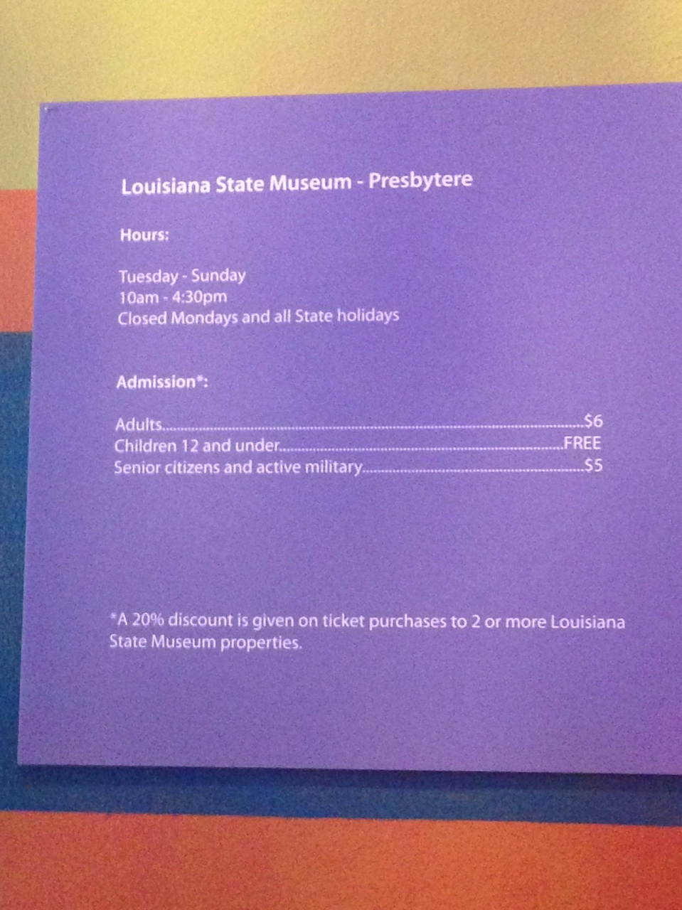 入場料は大人$6、 子供(12才以下)$無料、シニアと軍隊 $5- 旅行時期