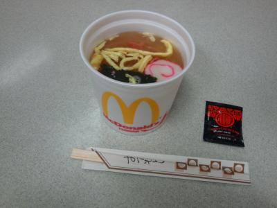 友人には申し訳なかったのですが、長時間のフライトで何も食べてなかった為、どうしてもテレビで見たハワイのマクドナルド限定のラーメン、サイミンを食べたくて食事の前にも関わらずワガママを言って食べました。