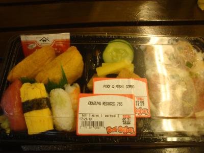 10時近かったのでお弁当やお惣菜が安くなっていたので鬼買いしてしまいました。日本のお店ですが、お弁当やお惣菜の量は中々のアメリカンサイズでした。