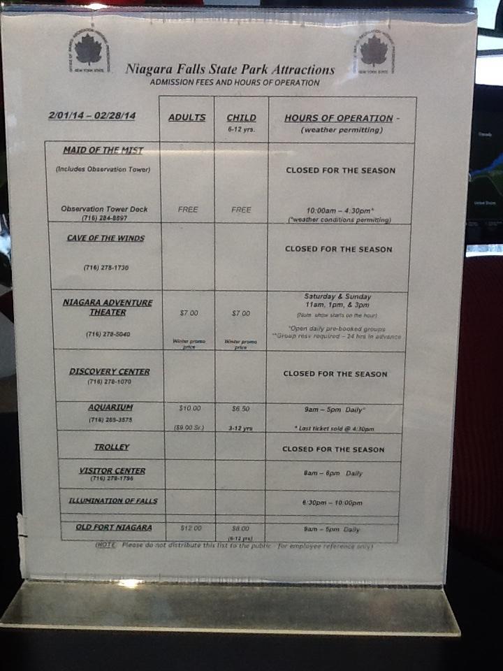 今回、ナイアガラの滝を見に行ったのが夜のライトアップの時と早朝の営業時間外だったので展望タワーには行けませんでした。(10:00AM~4:30PM)