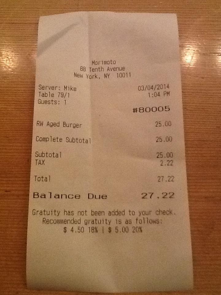 会計の伝票を見たら、Taxもチップも全部混みの値段になっていたので、チップを付け足さなくても大丈夫でした。