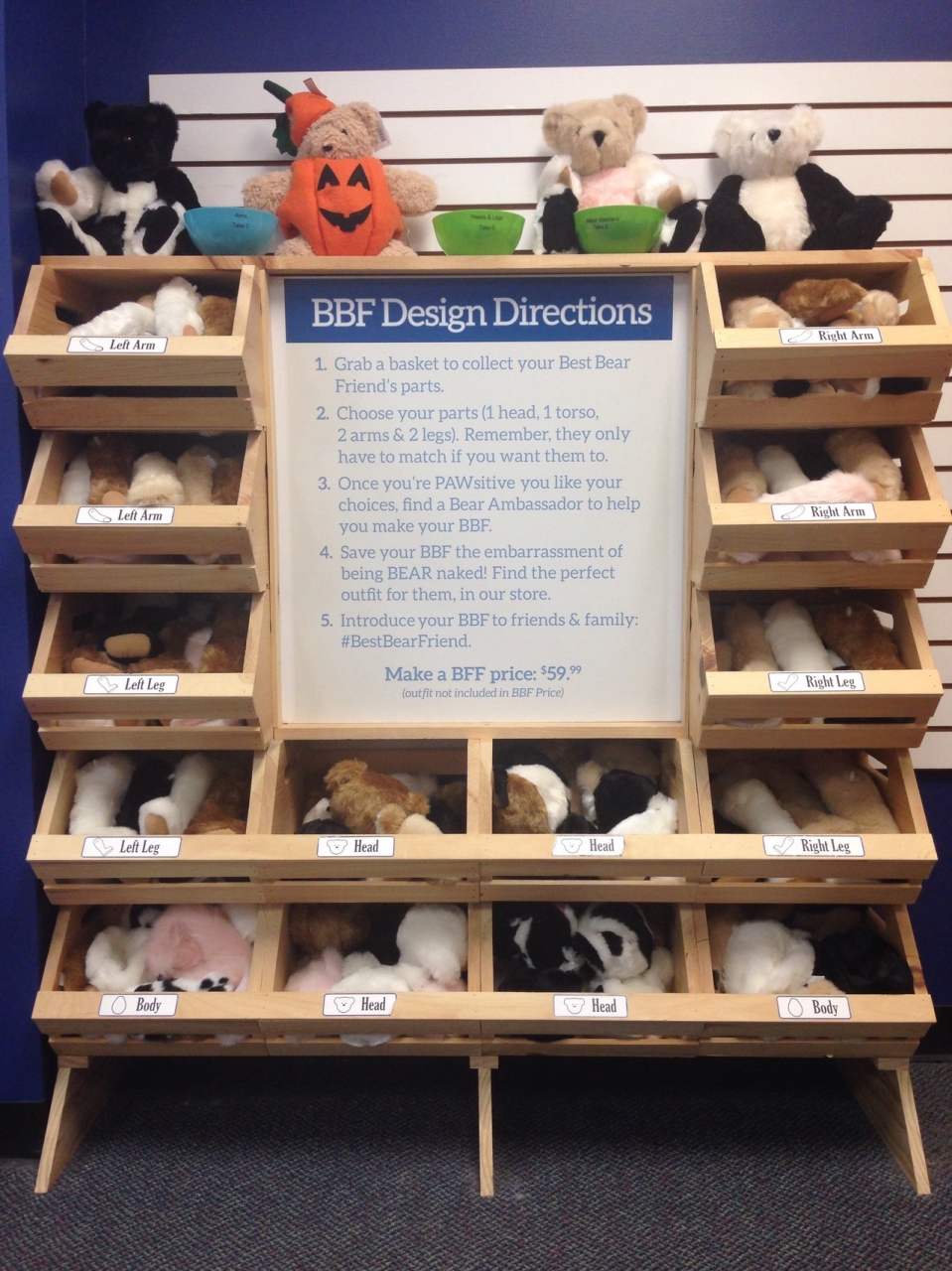 自分でテディベアの色、パーツ、服が選べて世界で一つだけのテディベアが作れます。