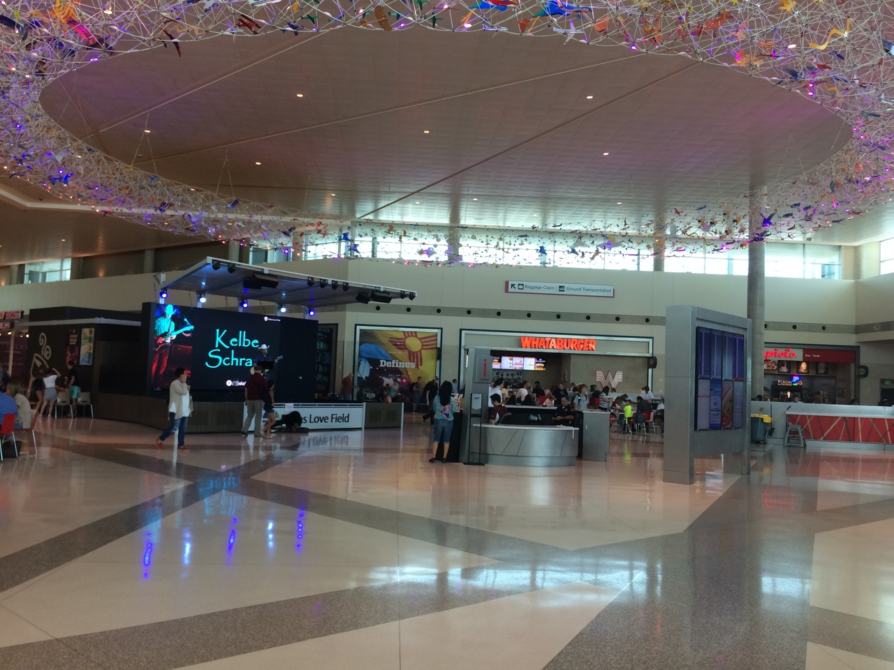 空港の設備もとてもよく、子供のプレイルーム、自由に弾けるピアノ、ギャラリー、カントリー歌手によるフリーライブもありました。