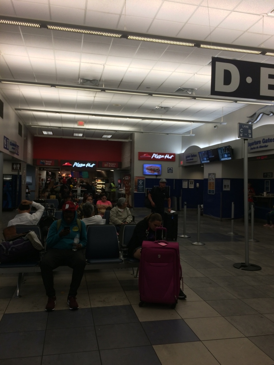 ダウンタウンの滞在先のCeders駅からWest End駅でグリーンラインに乗り換えて、inwood駅で下車して524番のバスに乗って空港の中に入るまで1時間かかりませんでした。