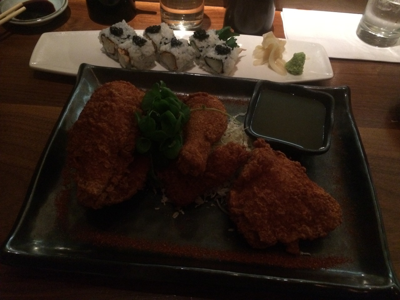 アメリカンフュージョンのお寿司屋さんでお寿司屋なのにフライドチキンがありました。
