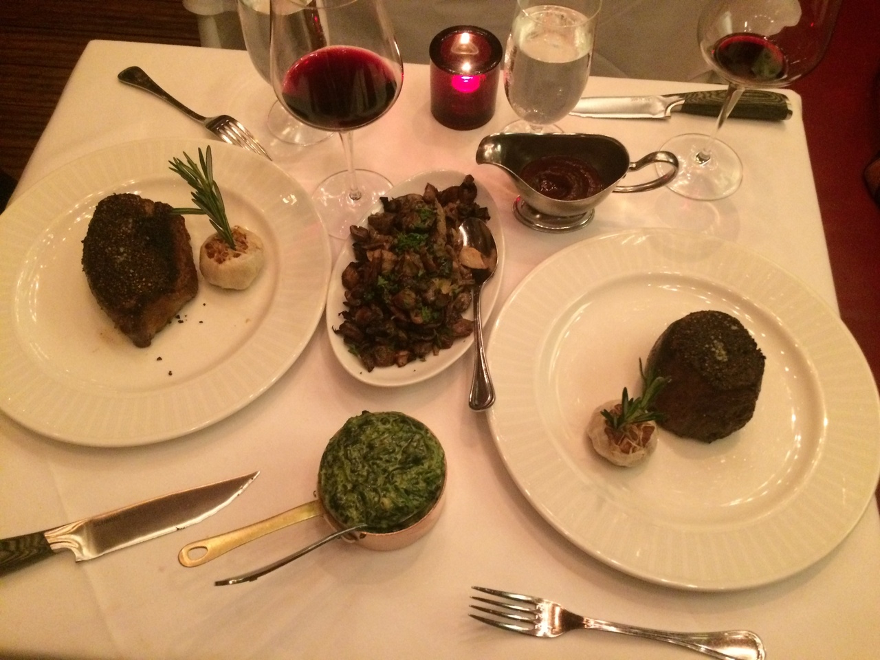 私達はポーターハウスステーキを食べたかったのですが、このレストランにはポーターハウスが無く、フィレミニオンステーキとサーロインステーキを頼んでシェアしました。2つ頼んでシェアすると伝えたらお店の方が半分ずつにしてサーブしてくださいました。- 旅行時期