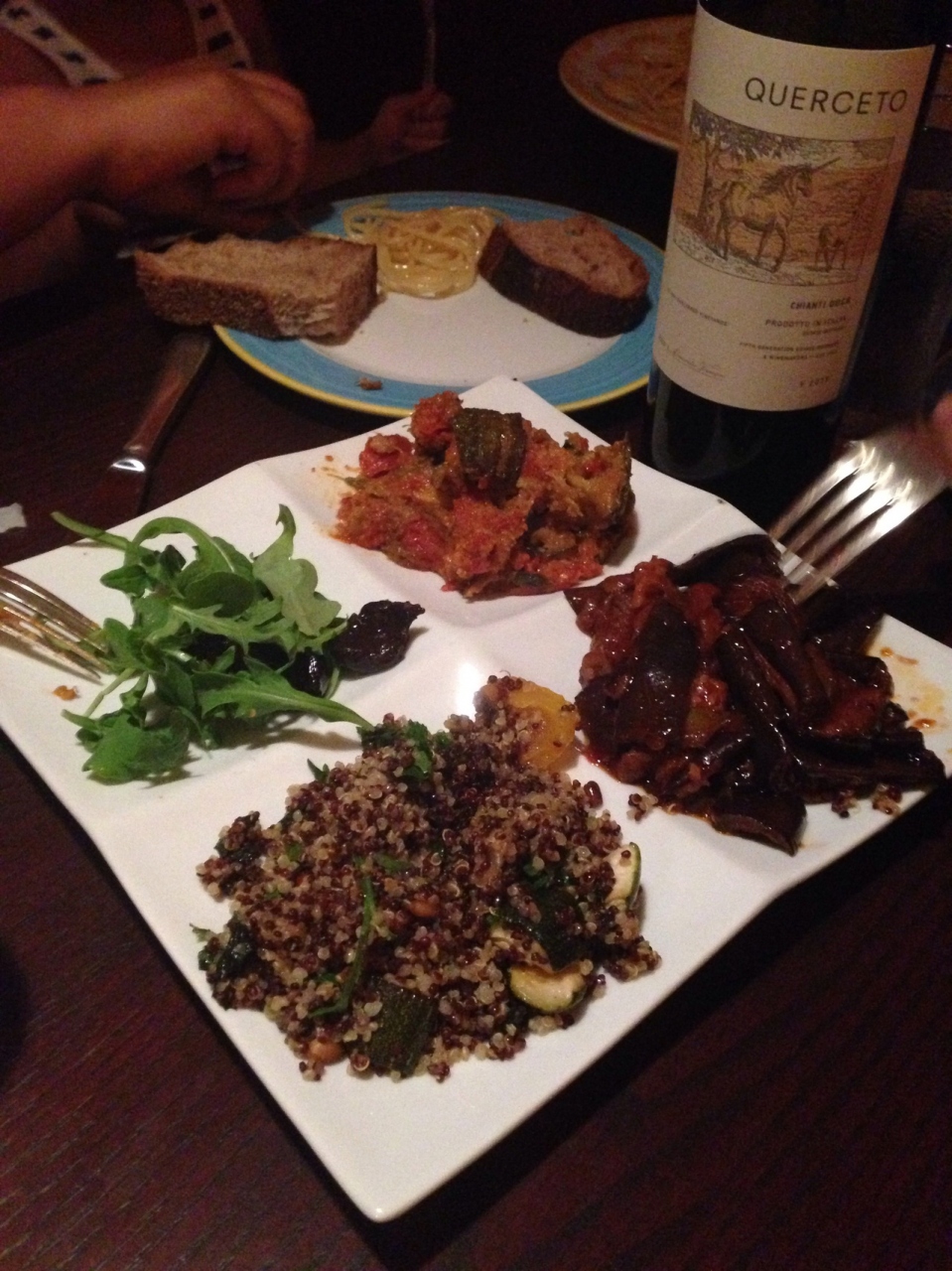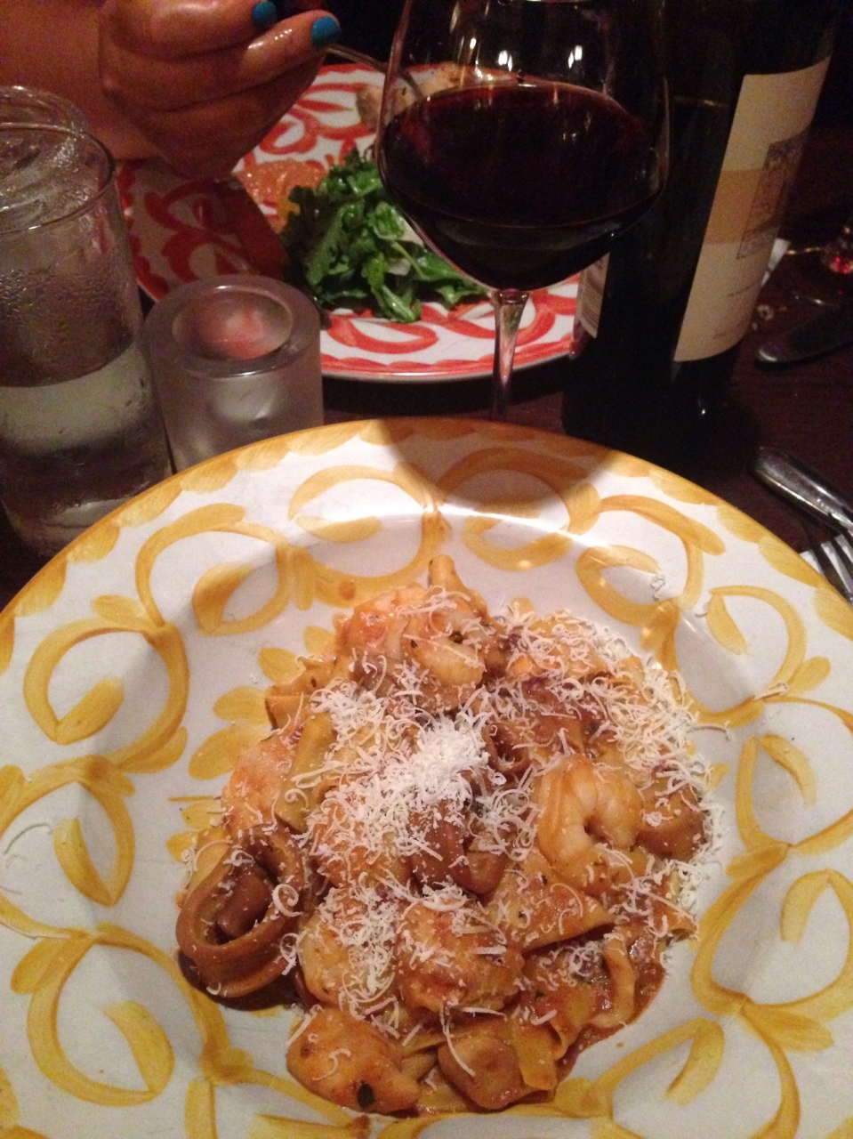 他州から来た友人家族と歩いてセントラルパーク前のレストランに行こうとしていたのですが、突然夕立が降って来たのでこのイタリアンレストランに入りました。