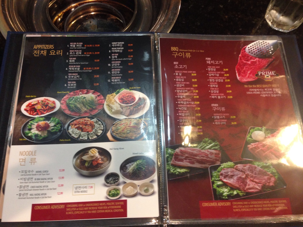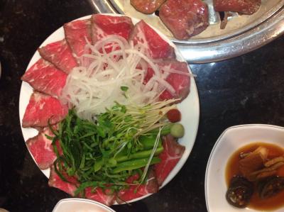 三種類のお肉と(リブは+$1)と2種類の付け合わせが選べます。