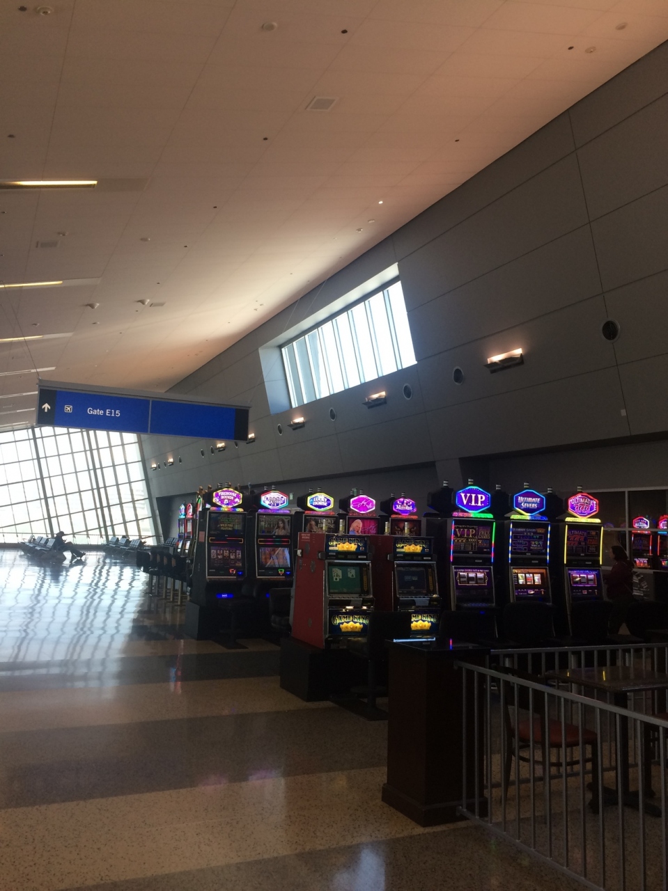 流石のラスベガス、空港の中にも何とカジノがあります。空港の所々にあるので、空港の一ヶ所にあるわけではありません。