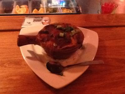 お腹が少し空いたのでホテルのレストランに入ってオニオングラタンスープを食べました。$5でオニオングラタンスープが食べれるというNYCじゃ信じれなく安かったのですが、お値段以上に美味しかったです。体も温まりました。
