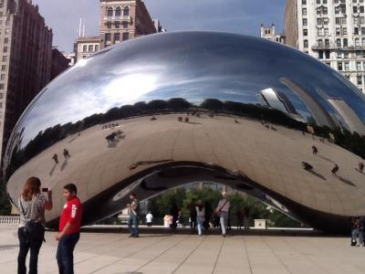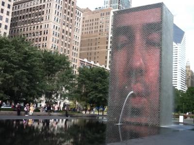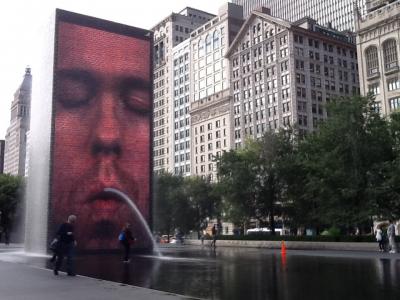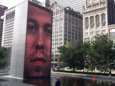 シカゴ観光に行った2泊3日の最終日に行きました。シカゴと言うとどのガイドブックにも、教科書にも載っている有名なシルバーの豆の形をしたモニュメント(ニックネームはザ ビーン)や長方形のタワーから人の顔が浮かび上がり、表情が変わっていき水が流れるクラウンファウンテンもここにあります。